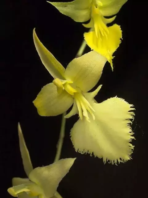 喉红石斛:附生。茎丛生,直立,粗短,近棒状纺锤体。叶2-4枚,生于茎顶。总状花序顶生,花序轴长5-…