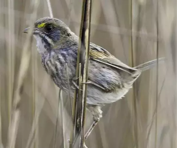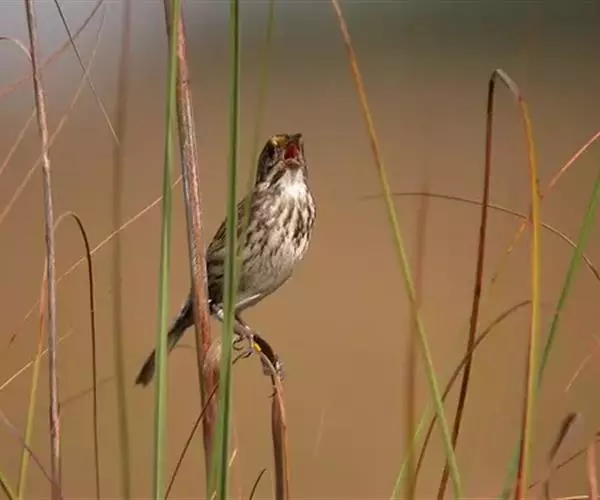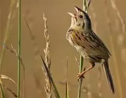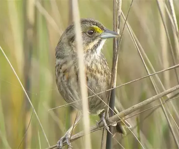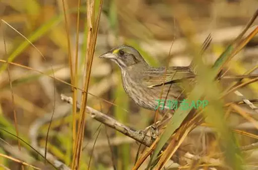 海滨沙鹀(学名:Ammodramus maritimus):小型鸣禽,体长13-15厘米,翼展18-20厘米。一般主食植物种子。喙为圆锥形,与雀科相比较为细弱,上下喙边缘不紧密切合而微向内弯,因而切合线中略有缝隙;体羽大多似麻雀,外侧尾羽有较多的白色。非繁殖期常集群活动,繁殖期在地面或灌丛内筑碗状巢,产卵3-4枚,一般由雌鸟孵化12-13天,雏期约等于孵化期。