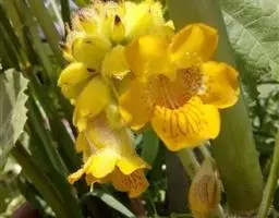 花桔黄色;花被管较粗短,长2-3厘米;内花被裂片宽2-3厘米。花被裂片多数,雌雄蕊发育不全。
