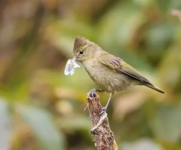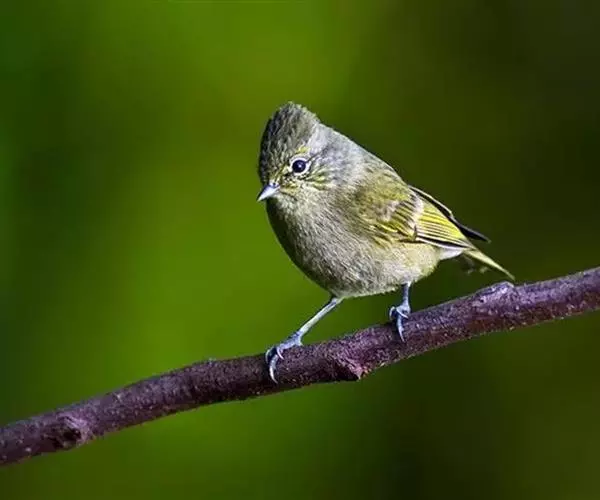 体小(10厘米)而异型的山雀。外形似柳莺或啄花鸟。体羽大致橄榄色,羽冠短,狭窄的黄色眼圈,浅黄色短眉纹有时被覆盖;腿甚显粗壮。与火冠雀的区别在具冠羽而腰部无浅色反差。