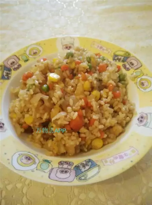 什锦炒饭 主料:青豆、胡萝卜、火腿、香肠、鸡蛋、米饭(最好是隔夜饭)。