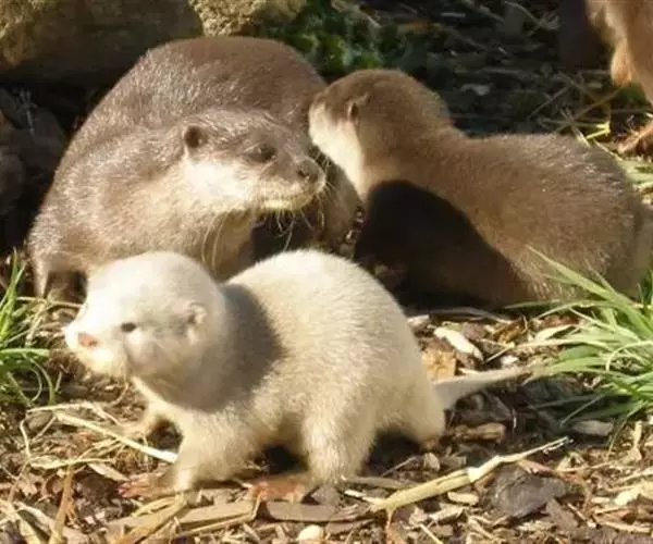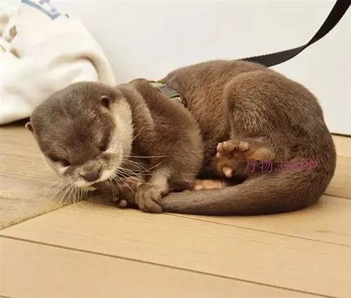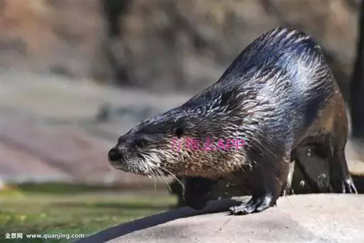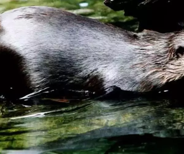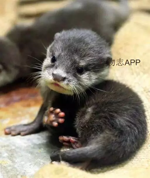 水獭体毛较长而致密,通体背部均为咖啡色,有油亮光泽;腹面毛色较淡,呈灰褐色。绒毛基部灰白色,绒面咖啡色。