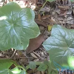 多年生草本,植株高15-30厘米。根状茎细长,通常圆柱形,横走,多须根;茎直立,无毛,有时带紫红色。茎生叶通常2枚,薄纸质,互生,不等大,形状多样,偏心盾状着生,叶片不分裂或浅裂,长5-11厘米,宽7-15厘米,基部常呈圆形,两面无毛,上面有时带紫红色,边缘疏生乳突状细齿;叶柄不等长,约3-11厘米,无毛。