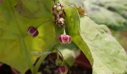 花2-5朵着生于叶基部处,无花序梗,簇生状;花梗长1-2厘米,下弯,疏生白色柔毛;萼片6,长圆状披针形,长2-2.5厘米,宽2-5毫米,先端渐尖,外面被柔毛,内面无毛;花瓣6,淡赭红色,长圆状条带形,长4-5厘米,宽0.8-1厘米,无毛,先端圆钝;雄蕊6,长约2厘米,花丝长约8毫米,花药长约1.2厘米,药隔先端显著延伸;雌蕊长约9毫米,子房坛状,花柱长约2毫米,柱头膨大呈盾状。浆果小,圆球形。花期4-6月,果期6-9月。