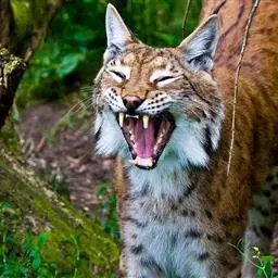 在捕捉猎物时,常借助于草丛、灌丛、石头、大树等做掩体,埋伏在猎物经常路过的地方等候着,两眼警惕地注视着四周的动静。它的忍耐性极好,能在一个地方静静地卧上几个昼夜,待猎物走近时,才出其不意地冲出来,捕获猎物。如果一跃捕空,突击没有成功,使猎物溜走了,也不会穷追猎物,而是再回到原处,耐心地等待下一次机会。有时它也悄悄地漫游,看到猎物正在专心致志地取食,便蹑手蹑脚地潜近,再潜近,冷不防地猛扑过去,使猎物莫名其妙地束手就擒。猞猁也善于游泳,但不轻易下水。它还是个出色的攀缘能手,爬树的本领也很高,甚至可以从一棵树纵跳到另一棵树上,所以能捕食树上的鸟类,尤其是在夜间,当林中一片寂静、栖居在树上的鸟类都进入了梦乡的时候,便伸出利爪得心应手地猎取食物。 [1-2]