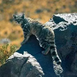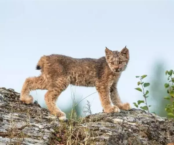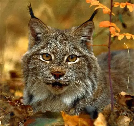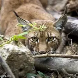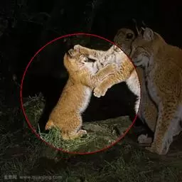 猞猁(学名:Lynx lynx):属于猫科,体型似猫而远大于猫,体粗壮,尾极短,通常头不及体长的1/4。四肢粗长而矫健。耳尖生有黑色耸立簇毛。两颊具下垂的长毛。上体浅棕、土黄棕、浅灰褐或麻褐色,或为灰白而间杂浅棕色调;腹面浅白、黄白或沙黄色。尾端呈黑色。国家二级保护动物。