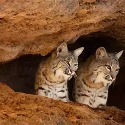 猞猁的两性特征区别不大,仅在身材和体重上有所表现:雄性猞猁比雌性猞猁身材稍微大一点,体重也稍微重一点(1-2千克)。