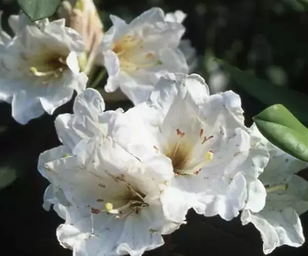 大白杜鹃是常绿灌木或小乔木,高1-3米,稀达6-7米;树皮灰褐色或灰白色;幼枝绿色,无毛,老枝褐色。冬芽顶生,卵圆形,长9-10毫米,无毛。叶厚革质,长圆形、长圆状卵形至长圆状倒卵形,长5-14.5厘米,宽3-5.7厘米,先端钝或圆,基部楔形或钝,稀近于圆形,无毛,边缘反卷,上面暗绿色,下面白绿色,中脉在上面稍凹下,黄绿色,下面凸出,侧脉约18对,在上面微凹入,下面稍凸起;叶柄圆柱形,长1.7-2.3厘米,黄绿色,无毛。