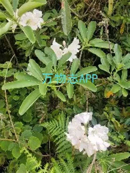 大白杜鹃(学名:Rhododendron decorum Franch. ):常绿灌木或小乔木,高1-3米,稀达6-7米;树皮灰褐色或灰白色;幼枝绿色,无毛,老枝褐色。冬芽顶生,卵圆形,无毛。叶厚革质,长圆形、长圆状卵形至长圆状倒卵形,上面暗绿色,下面白绿色。顶生总状伞房花序,有花8-10朵,有香味;花冠宽漏斗状钟形,变化大,长3-5厘米,直径5-7厘米,淡红色或白色。蒴果长圆柱形,黄绿色至褐色,肋纹明显。花期4-6月,果期9-10月。