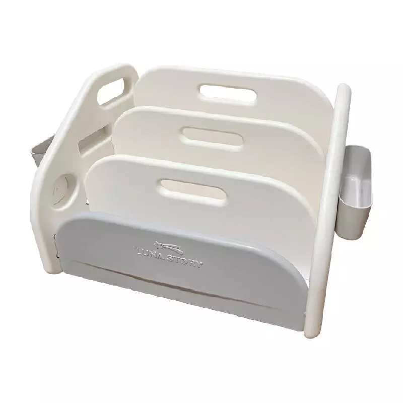 书库内为充分利用有限空间典藏大量图书,应用钢质材料之坚固耐久的特性为积层书架提供陈列图书,是一种良好的方法。然而,各国对于书架的规格各有其规定,像美国的积层书架每层是采净高2280mm,每层分为5~7段;而英国等欧洲国家,每层净高则采2250mm,隔板的单面宽度为200mm,支柱宽为50mm。