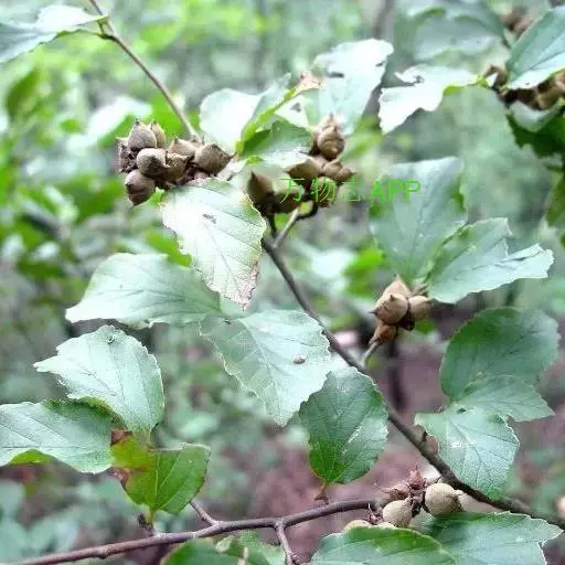 落叶灌木或小乔木,高达8米;嫩枝有星状绒毛;老枝秃净;芽体长卵形,有灰黄色绒 金缕梅 毛。叶纸质或薄革质,阔倒卵圆形,长8-15厘米,宽6-10厘米,先端短急尖,基部不等侧心形,上面稍粗糙,有稀疏星状毛,不发亮,下面密生灰色星状绒毛;侧脉6-8对,最下面1对侧脉有明显的第二次侧脉,在上面很显著,在下面突起;边缘有波状钝齿;叶柄长6-10毫米,被绒毛,托叶早落。