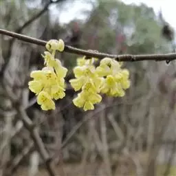 金缕梅(Hamamelis mollis Oliver ),别名木里香、牛踏果,蔷薇目、金缕梅科、金缕梅属落叶灌木或小乔木,高达8米;嫩枝有星状绒毛;老枝秃净;芽体长卵形,宽倒卵圆形叶 形美丽。2月前后先叶开放,花数朵簇生叶腋,色金黄,其金瓣如缕,翩翩起舞,婀娜多姿,早春开花,迎雪怒放,状似蜡梅,故名。由于其耐寒能力又名“忍冬花”。长江流域各省均有分布。