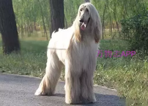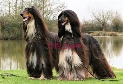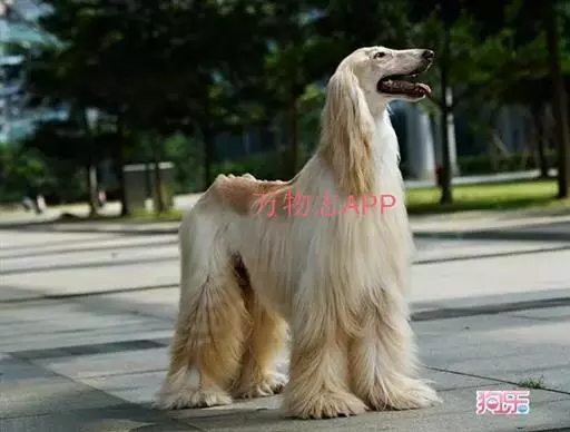 阿富汗猎犬全身披丝绢状的长毛,毛色鲜艳,呈多种颜色,背中线附近毛短,…