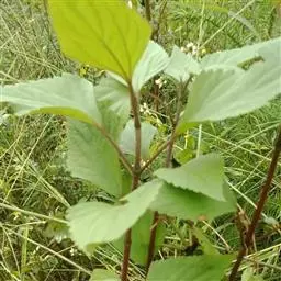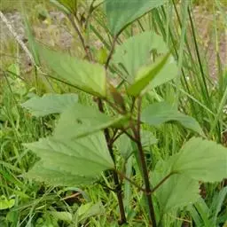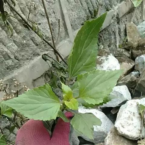 多年生草本,高30一90厘米。茎直立,分枝对生、斜上,茎上部的花序分枝伞房状;全部茎枝被白色或锈色短柔毛,上部及花序梗上的毛较密,中下部花期脱毛或无毛。叶对生,质地薄,卵形、三角状卵形或菱状卵形,长3.5—7?厘米,宽1.5—3厘米,有长叶柄,柄长4—5厘米,上面绿色,下面色淡,两面被稀疏的短柔毛,下面及沿脉的毛稍密,基部平截或稍心形,顶端急尖,基出三脉,侧脉纤细,边缘有粗大圆锯齿;接花序下部的叶波状浅齿或近全缘。头状花序多数在茎枝顶端排成伞房花序或复伞房花序,花序径2—4厘米或可达1.2厘米。总苞宽钟状,长3毫米,宽4毫米,含40—50个小花;总苞片l层或2层,线形或线状披针形,长3毫米,顶端渐尖。花托高起,圆锥状。管状花两性,淡紫色,花冠长3.5毫米。瘦果黑褐色,长1.5毫米,长椭圆形,5棱,无毛无腺点。冠毛白色,纤细,与花冠等长。花果期4—10月。