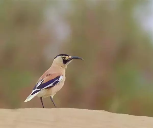 白尾地鸦属于小型鸦类,当地百姓称为其“沙鹊”。而艾伦·休姆则在自己的手稿中称其为“鸦类中最华丽的一种”。白尾地鸦在外形上最大的特征是长有鼻孔须,这是白尾地鸦对沙漠环境的适应性表现,可以阻挡风沙吹入鼻孔。此外,不同于其他鸟类,白尾地鸦的翅膀短而圆,飞行能力较弱,一次飞行的最长距离也不过500米左右,但极善于奔跑,当地的维族百姓又称其为“克里遥丐”,维语意思是“奔跑如飞”。