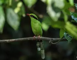 黑额树鹊是雀形目、鸦科的鸟类,体长约38厘米。黑色的尾甚长,上背、背、下腹及尾覆羽棕色。…