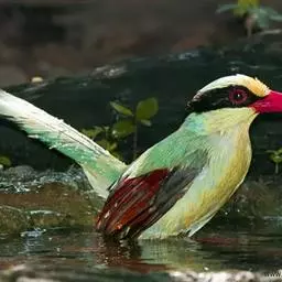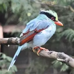 蓝绿鹊:中型鸟类,共有5个亚种。体长36-38厘米。尾长,嘴、脚红色。通体羽色主要为草绿色,…