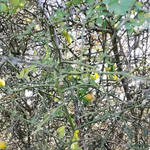 香橼为小乔木或灌木状;株高达5米;幼枝、芽及花蕾均暗紫红色;茎枝多刺,长达4厘米;单叶,…