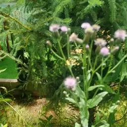 斑鸠菊,原产我国西南各地。喜温暖、湿润,阳光充足,要求疏松、肥沃土壤。不耐寒,也不耐干旱。高3—4m,小枝被灰白色密柔毛。叶互生,纸质,卵状椭圆形,卵状披针形或披针形,全缘,叶面有乳头状突起,叶背被灰白色短柔毛。头状花序多数,在枝顶排成宽复伞房状花序,花筒状,淡紫色,花期春夏。播种或分株法繁殖。栽培管理简单容易。适于自然式丛栽或作花境背景。