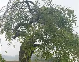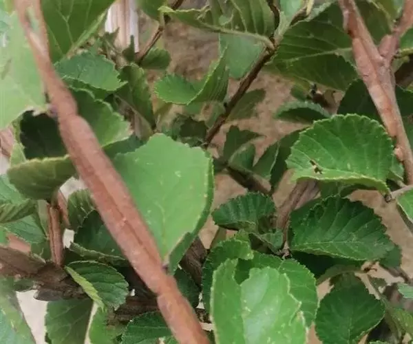 树皮暗灰色,粗糙,不规则纵裂。幼树枝条直立,且被白色毛;老树枝条先端下垂,有时木栓质发达成为瘤状。…