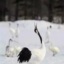 丹顶鹤:是鹤科、鹤属的一种大型涉禽,体长120-160厘米。颈、脚较长,通体大多白色,头顶鲜红色,…