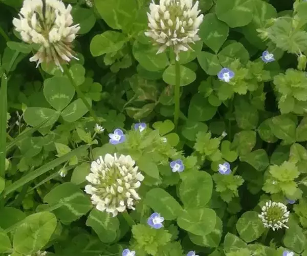 白车轴草,豆科车轴草属的多年生草本植物,茎贴地匍匐;叶柄直立,小叶心形,边缘具细齿,叶脉明显,…