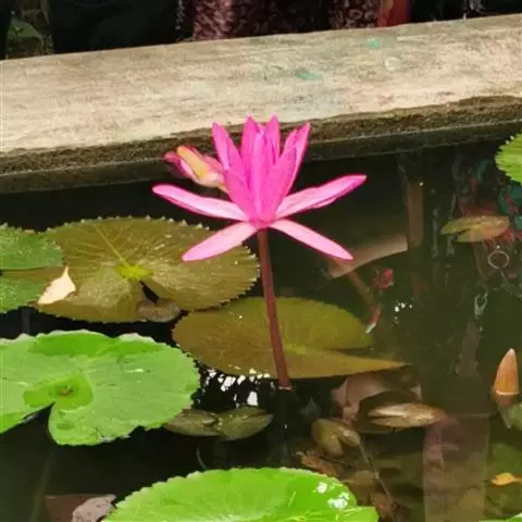 在中国荷文化史上,盆荷这种形式出现之初只是被用于私家庭院观赏。盆栽和池栽相结合的布置手法,提高了盆荷的观赏价值,在园林水景和园林小品中经常出现。睡莲水石盆景是一种新的盆景。它是睡莲盆栽与水石盆景的有机结合,既体现山石的刚毅挺拔,又显示出娇艳妩媚。