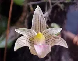 毛药卷瓣兰是兰科石豆兰属的根状茎匍匐。粗约2毫米;根出自生有假鳞茎的根状茎节上、假鳞茎在根状茎上彼此相距,卵状球形;叶厚革质,长圆形了,先端钝并且稍凹入,基部楔形,具短柄或无柄,边缘下弯,在上面中肋下陷;花葶从假鳞茎基部抽出,伞形花序,花序柄纤细,花苞片卵形、舟状,花黄色,中萼片卵形,侧萼片披针形,花瓣卵状三角形,唇瓣肉质,舌形,药帽前缘具短流苏。花期3-4月。毛药卷瓣兰分布于中国台湾、福建北部、浙江中西部、湖北西部、湖南北部、广东北部、广西等地。生于海拔1000-1850米的山地林中树干上或沟谷岩石上。毛药卷瓣兰味苦、淡,性凉,具有润肺止咳,益肾补虚,祛风活血的功效,可用于治疗咳嗽吐血,肾亏体虚,风湿痹痛的症状。