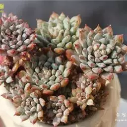 女雏是景天科石莲花属的多肉植物。特征是小巧的株形和橙粉色叶缘。极易生侧芽,…