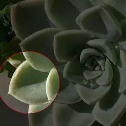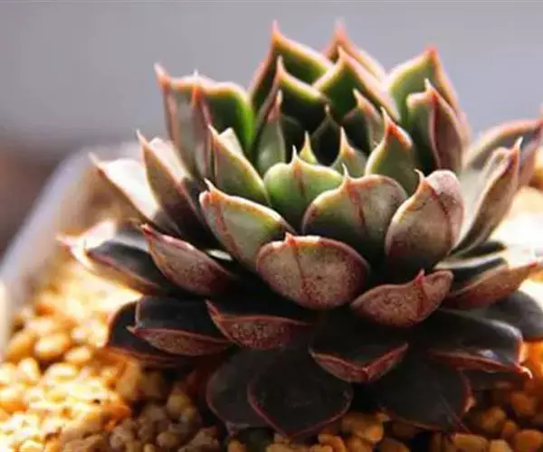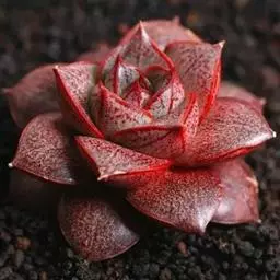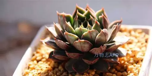 厚实的叶片上,有漂亮的红褐色花纹。相比大和锦,尺寸更加迷你可爱。生长缓慢,阳光充足的条件下,叶片会形成紧凑聚拢的状态,若是光线不足,叶片会松散开来,红色也会减退