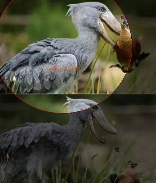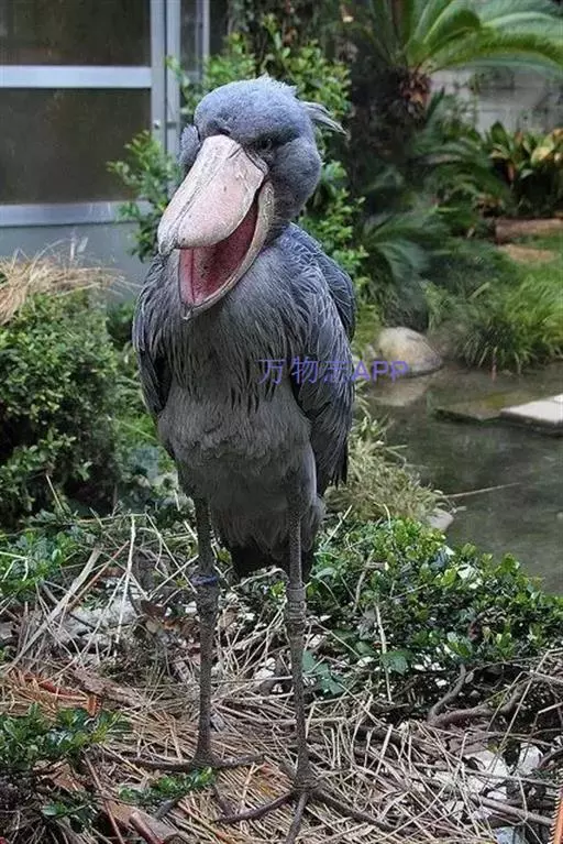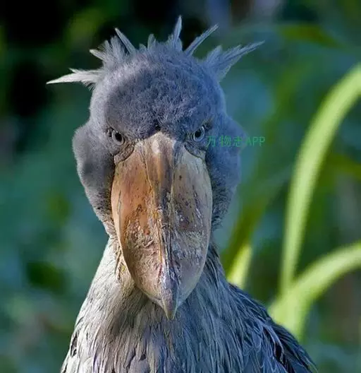 鲸头鹳是一种像鹳的鸟类,体型高大,平均有1.2米高,体重4000-7000克,翼展达到2.6米。大小似白鹳,头尤其巨大,也是现存头最大的鸟。长有一张非常有趣、可爱的面部。它那巨大、斑驳的喙部使其显得更具魅力。巨大鸟喙看起来就像一个鲸鱼的头部,眼睛位于头部的前端,和猫头鹰的眼睛长在同一平面上。喙宽大而粗壮,是世界上最宽鸟喙,宽12厘米,嘴端下弯成勾状,鸟喙的作用非同小可,不仅尖端尖锐异常,而且周边也像快刀般的锋利,能够穿透鳄鱼厚厚的皮肤,并且上下两片如此夹紧猎物,就像一个工件被夹在钳工的老虎钳上。