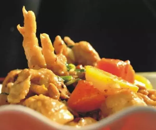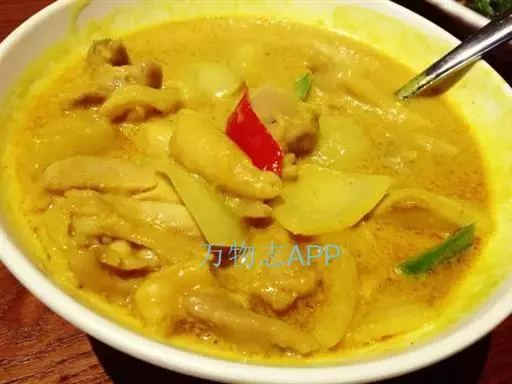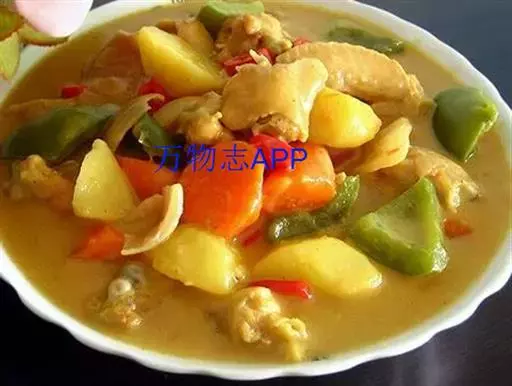 咖喱鸡 味甘,性微温。能温中补脾,益气养血,除心腹恶气。