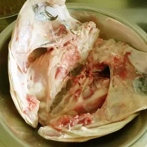 4、取净瓷盆,加入适量冷清水,随即将鸡泡起(目的为了防止鸡被风吹后变色)。
