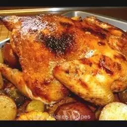 2、把肥嫩生鸡摘洗干净,斩去头颈、尾脚,用刀从鸡背上顺长剖开,切成2片,斩去脊背骨,再把刀从鸡的腿、脯中间切断,共切成4块。去皮山芋洗净,切成菱形块。