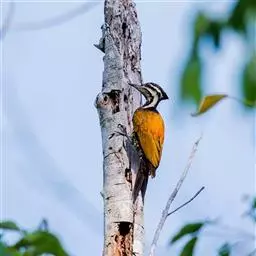 三趾啄木鸟,是啄木鸟科、啄木鸟属的小型鸟类,体长20-23厘米,雄鸟头顶金黄色,雌鸟黑色而具白色斑点。…