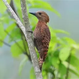 栗啄木鸟:是一种红褐色啄木鸟,体长21厘米。雄性成鸟整个头棕色,…