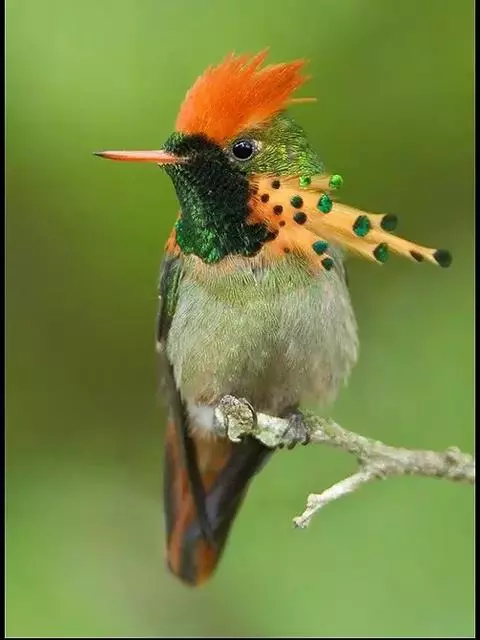 缨冠蜂鸟是世界上体型最小的蜂鸟之一,体长仅6.6厘米,重约2.3克。背部铜绿色,额及下体绿色。臀部…