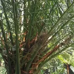 作为切叶栽培的散尾葵,连续采叶2 年后,须对植株进行全面地复壮以及必要的设备维护。主要是遮光设备的维护,因为随着植株的不断生长,遮光设备满足不了植株生长高度的要求,在台风季节, 很容易把荫网弄破。其次是植株的复壮。因为主干明显的生长优势,影响了侧芽的生长,造成产量下降;还有植株的不断分蘖,使株型过大,造成生长空间不够、光线不足、营养跟不上,最终使叶片质量大幅下降。措施是对植株进行全面地复壮修剪和去劣存优, 主要是把过高、过大的主干在离土表30-40厘米处锯掉, 将一些病枝、弱枝剪去;株型太大的可实行分株分丛, 留下6-10个健壮枝条重新种下, 培好土, 淋足定根水。