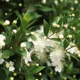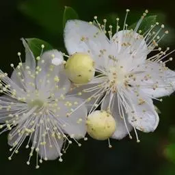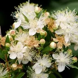 香桃木是桃金娘科香桃木属植物。枝四棱,幼嫩部分稍被腺毛;叶芳香,革质,叶片卵形至披针形;花芳香,…