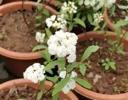 复伞房花序,直径3-4厘米,多花密集;总花梗和花梗均光滑无毛,花梗长5-7毫米;苞片膜质,披针形,边缘有腺齿;花直径1.2-1.5厘米;萼筒钟状,外面无毛;萼片三角卵形或三角披针形,长2-4毫米,比萼筒短,先端尾状渐尖,全缘,两面均无毛;花瓣近圆形,直径约5毫米,白色;雄蕊20,比花瓣稍短;花柱4-5,柱头头状,子房上部有稀疏柔毛。果实球形,直径8-10毫米,金黄色,果肉粉质;萼片宿存,反折;小核4-5,内面两侧有凹痕。花期5-6月,果期8-9月。