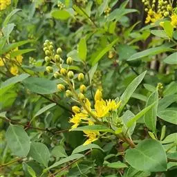 金英常绿灌木,株高约50-160厘米,嫩茎红色。叶片绿色,对生,椭圆形,先端尖,基部楔形,全缘。…