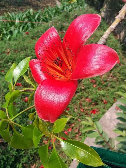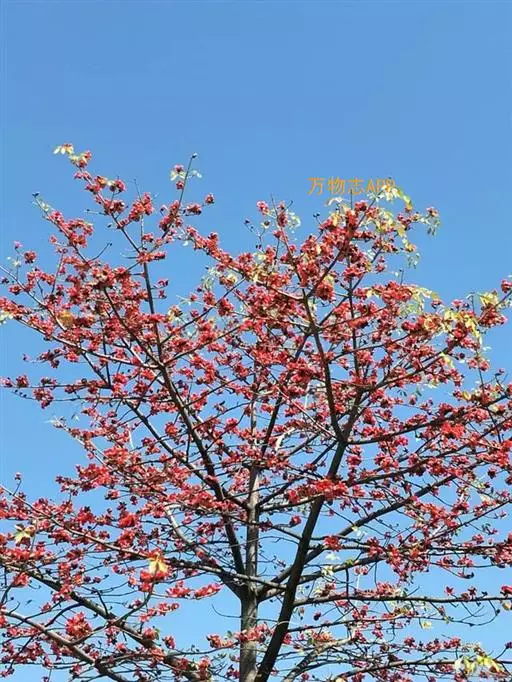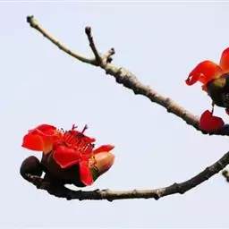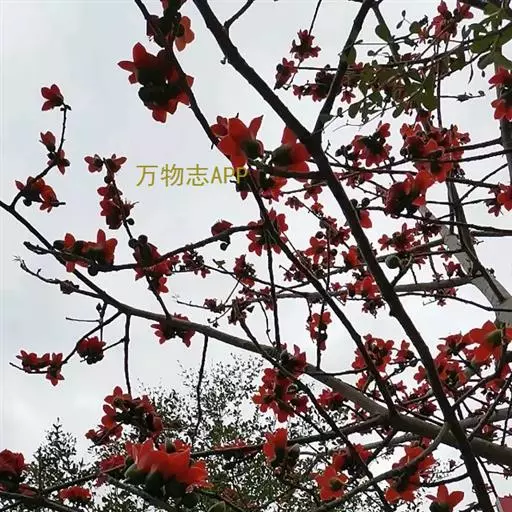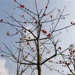 木棉又名红棉、英雄树、攀枝花、斑芝棉、斑芝树、攀枝,属木棉科,落叶大乔木,原产印度。木棉是一种在热带及亚热带地区生长的落叶大乔木,高10-25米。树干基部密生瘤刺,以防止动物的侵入。木棉外观多变化:春天时,一树橙红;夏天绿叶成荫;秋天枝叶萧瑟;冬天秃枝寒树,四季展现不同的景象。木棉花桔红色,3~4月开花,先开花后长叶,树形具阳刚之美。木棉的花大而美,树姿巍峨,可植为园庭观赏树,行道树。