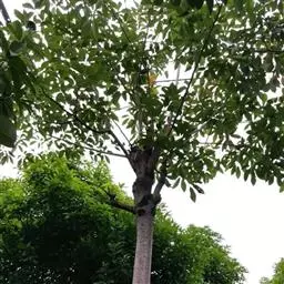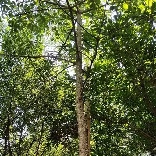 苗床育苗采用条播和撒播,条播的行距20厘米,深5厘米,沟内点播种子。覆土2厘米,表土盖草,播后6~7 天开始发芽,13~15天基本出齐。幼苗出土后及时松土除草,并适当间苗除草,注意病虫害防治。幼苗高4~5厘米,有初生叶2片以上时,可移入营养袋,苗高40厘米左右可移植培育大苗。当苗胸径有1~115厘米时即可嫁接。