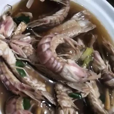 3、虾尾一变颜色就捞起海虾,以免虾肉太老;
