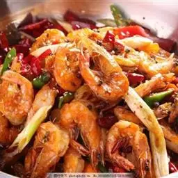 炒大虾是一道菜品,制作原料有大对虾、葱段、姜片等,用微火焖烤透,再将勺移正火,收汁微浓时放入味精,…