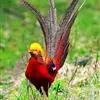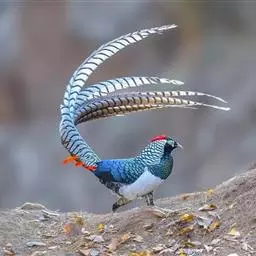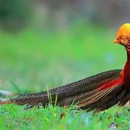 雉鸡(学名:Phasianus colchicus):共有30个亚种。体形较家鸡略小,但尾巴却长得多。雄鸟和雌鸟羽色不同,雄鸟羽色华丽,多具金属反光,头顶两侧各具有一束能耸立起而羽端呈方形的耳羽簇,下背和腰的羽毛边缘披散如发状;翅稍短圆;尾羽18枚,尾长而逐渐变尖,中央尾羽比外侧尾羽长得多,雄鸟尾羽羽缘分离如发状;雄鸟跗跖上有短而锐利的距,为格斗攻击的武器,近年来还发现距的长度与其所拥有的配偶数量明显相关,是雌鸟选择配偶的一个重要标准。