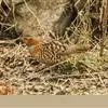 雌鸟较雄鸟为小,羽色亦不如雄鸟艳丽,头顶和后颈棕白色,具黑色横斑。肩和背栗色,杂有粗著的黑纹和宽的淡红白色羽缘;下背、腰和尾上覆羽羽色逐渐变淡,呈棕红色和淡棕色,且具黑色中央纹和窄的灰白色羽缘,尾亦较雄鸟为短,呈灰棕褐色。颏、喉棕白色,下体余部沙黄色,胸和两胁具黑色沾棕的斑纹。