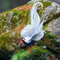 白鹇,是鸡形目雉科鹇属的一种留鸟。雄鸟上体白色并具黑色纹,下体黑色,头顶具黑色长羽冠,…