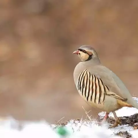 褐胸山鹧鸪:雄鸟体长22厘米,体重310克;雌鸟体长23厘米,体重220-275克。前额皮黄白色,…