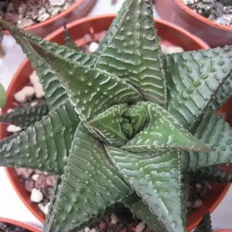 绿玉扇是芦荟科十二卷属多年生常绿多肉植物。无茎,株高5-8厘米;肉质叶左右排成两列呈扇形,叶片直立…